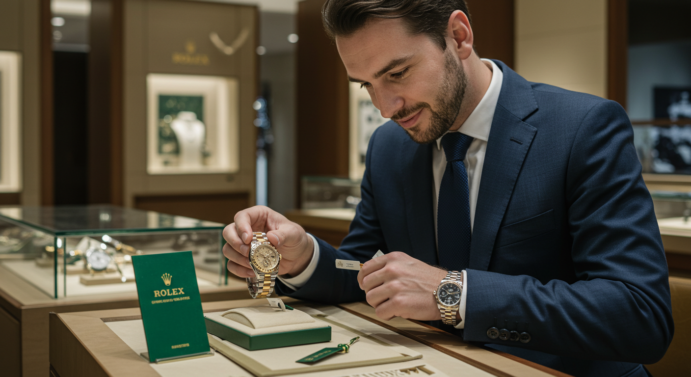ロレックスの査定において、付属品、特に「保証書(ギャランティカード)」の有無は非常に重要です。保証書があるだけで買取価格が数十万円単位で変わることも珍しくありません。箱(内箱・外箱)、取扱説明書、余りコマ、購入時のタグなども揃っているほど高額査定につながります。
