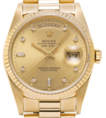 デイデイト Ref.18238はデイデイトの5代目となり、素材には18Kイエローゴールドを使用。中にはバケッドダイヤやラウンドダイヤが使用されたものや、ルビーやエメラルド、オニキスを使用した希少性の高いモデルも存在しており、これまでのデイデイト同様、ラグジュアリーな印象が強いラインナップが揃います。