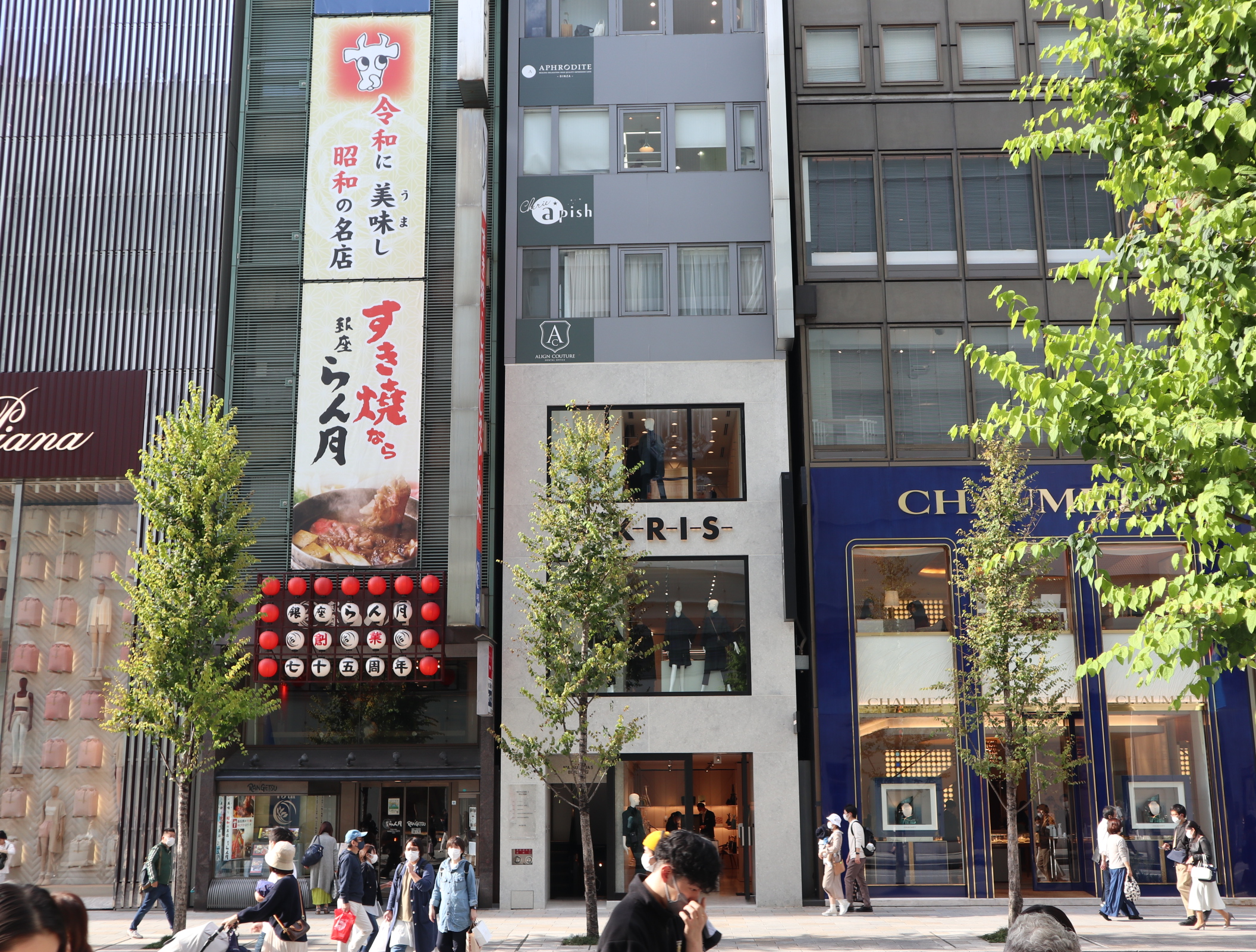 銀座松屋や銀座三越などの百貨店を始め、多くの高級ブランドショップが立ち並んでおり、日本人のみならず海外からも多くの観光客も訪れる日本が誇る高級ショップが集まったエリア。